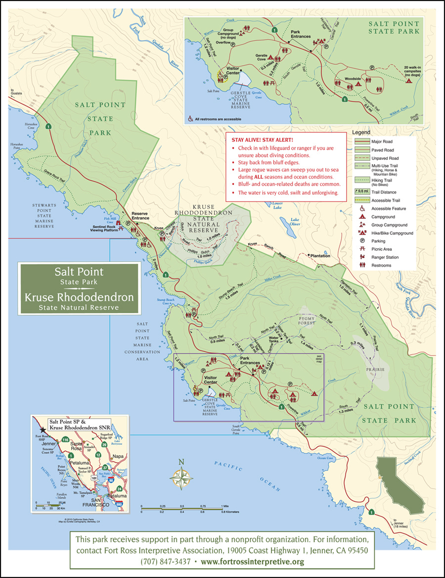 Picnic benches on the terraces above the ocean invite you to warm up with a bite and a beverage as well as to enjoy the view. Here along the Sonoma coast threads of the past interweave with the present as the landscape speaks through spectacular rock formations. The vitality of the life in and around the ocean can recalibrate your mind as you encounter the great Pacific and its mysteries.