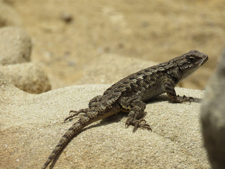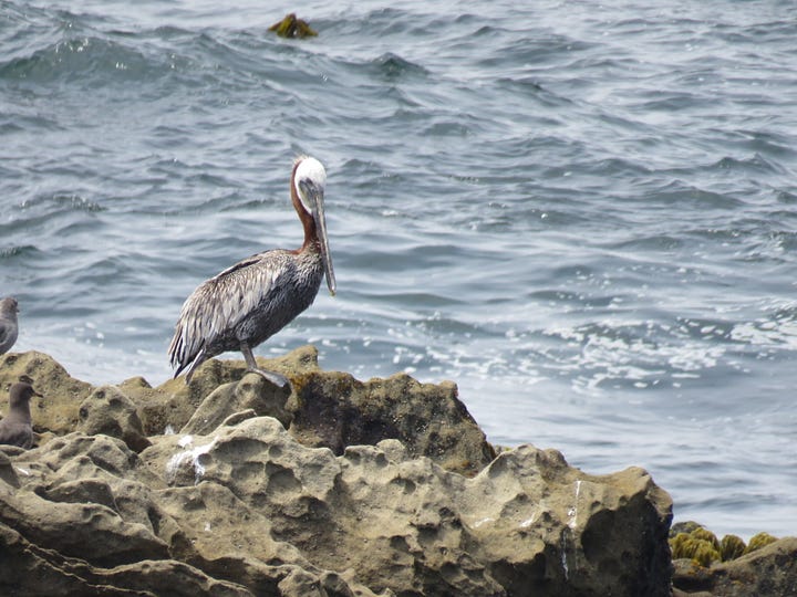 Along with the geology and history set in the brisk salt air are various avian species, such as enormous brown pelicans, seagulls and cormorants. Pinnipeds such as Pacific harbor seals lounge on the rocks below the cliffs, while western fence lizards soak up sun on the rocky terrace.