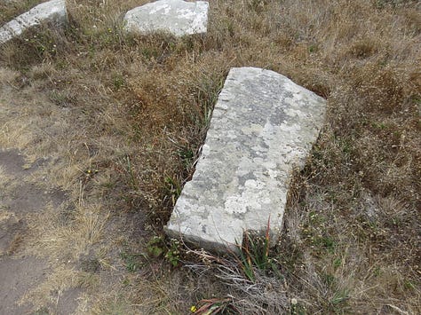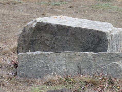 Breck Parkman, who spent 40 years as a California State Parks archaeologist, explained in his YouTube video about Salt Point titled “Sandstone” that the area of the coastal terrace to the ridgetop at Salt Point holds other interesting features. Through his informative video he explains the interesting blocks of rock that are found scattered here. Parkman gives details about logging that occurred in the forests here in the 1850s, saying that the ridge where we now hike once held chutes for milled lumber to be loaded onto schooners waiting in the waters below in order to transport the precious commodity to San Francisco.