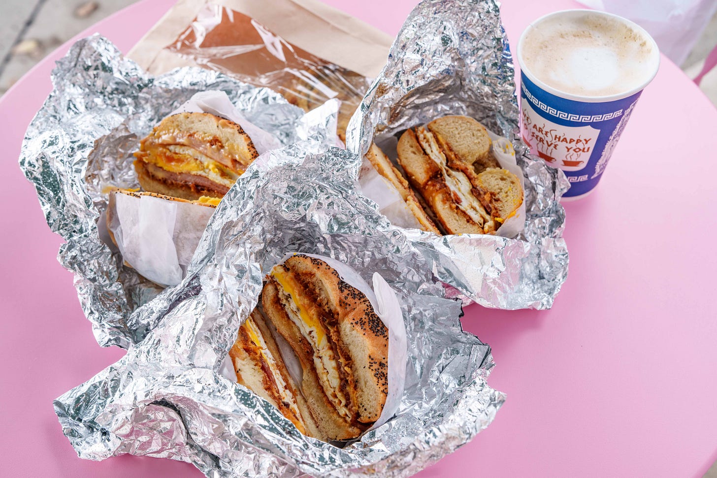 Each sandwich is wrapped first in paper, then in foil to hold its heat — just like the ones handed out from bodegas on cold New York mornings.